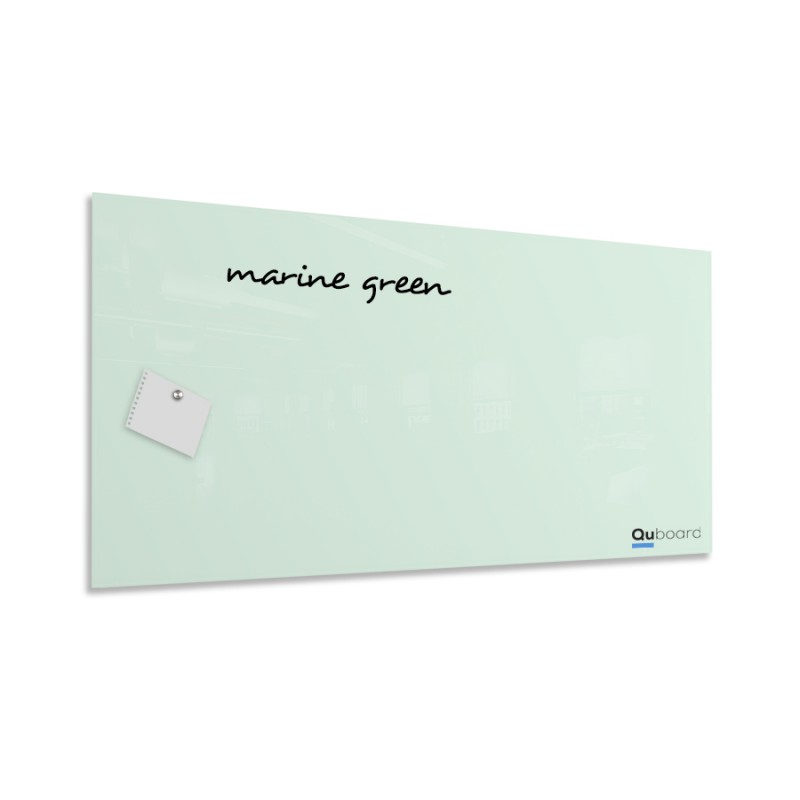 Překrásná zelená barva opticky zvětšuje prostor, proto je vhodná i do menších místností. Zpříjemněte si pracovní dobu pohledem na skleněnou tabuli v barvě mořské zelené.